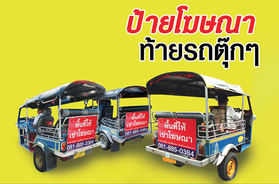 รถตุ๊กๆ ความคลาสสิคที่สุดของประเทศ ป้ายขนาด 0.6 X 0.8 เมตร รวมค่าขออนุญาตกระจายเสียงกับเทศบาล พร้อมสรุปงานและถ่ายภาพอย่างละเอียด